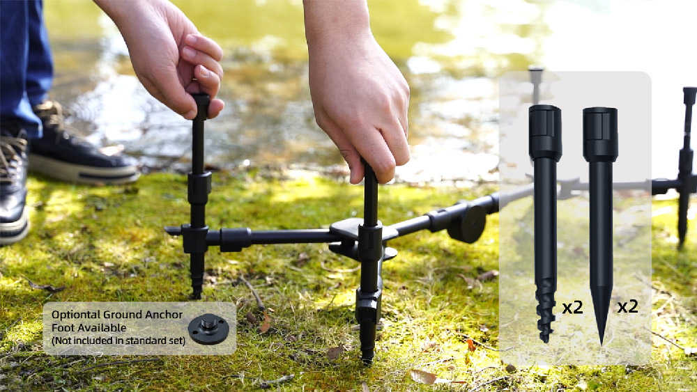 - Dual-Threaded & Spike Feet: Stable on any terrain, from mud to rocky surfaces, these feet provide the stability you need for a successful catch.